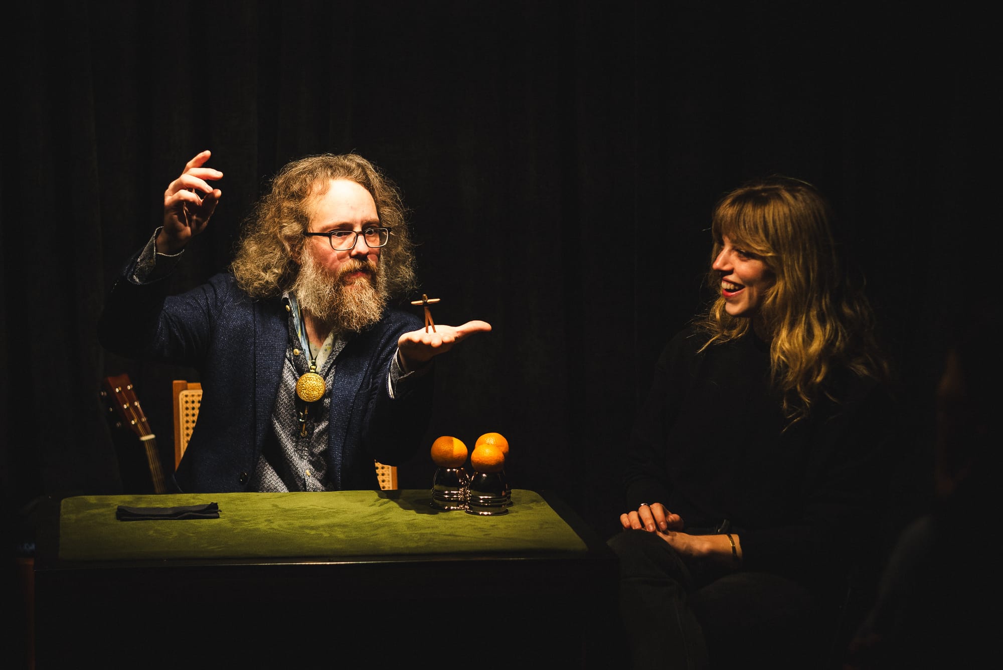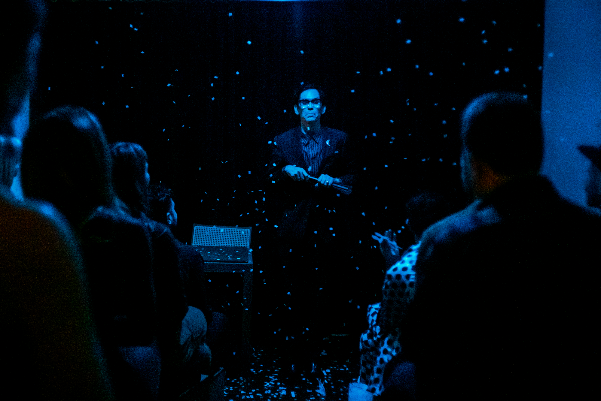 The 26-seat theater was, in fact, not quite finished, but Eric still had a great run. Since that beginning, almost 30 acts have performed in that secret space, including Garrett Thomas, Zabrecky, R. Paul Wilson, Andrew Frost, Jay Gilligan, Inés, and Alexandra Duvivier (all of whom have signed the bottom of the theater’s close-up table to commemorate their time there).