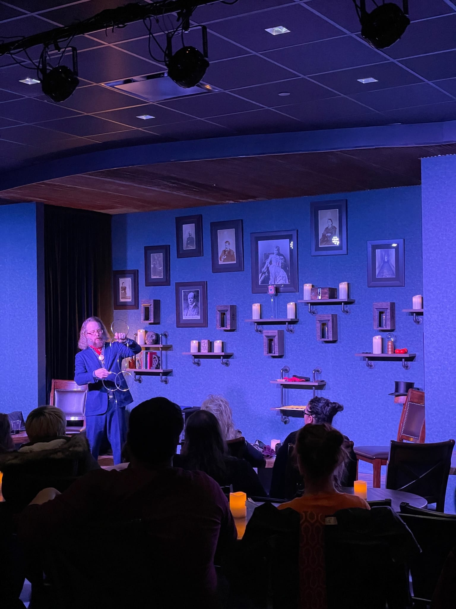 A magical speakeasy lounge at The Stanley Hotel where the world-class illusionists perform in an intimate parlor seetting.