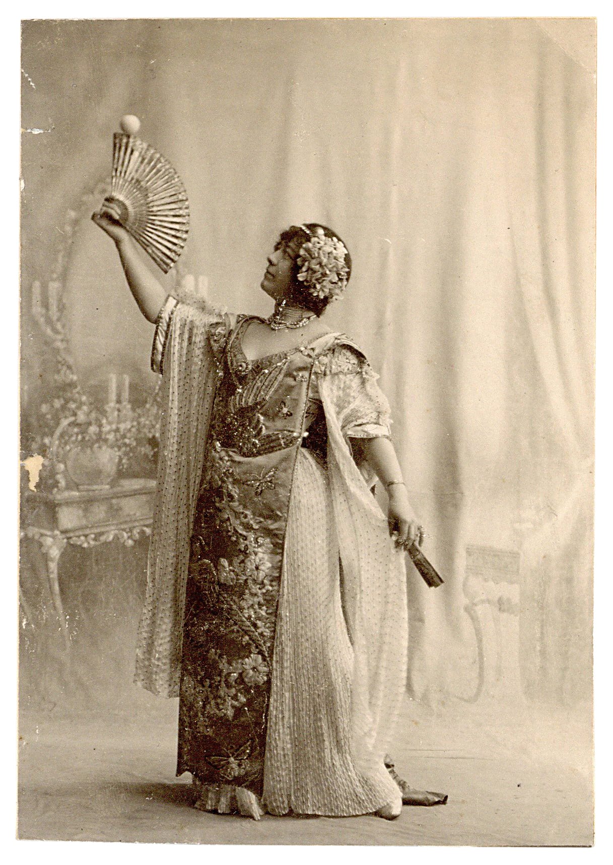 After she teamed up with Alexander Herrmann and the two were married, she brought her skills and artistic taste to his performances, most notably with her beautiful Serpentine Dance, an imitation of the famous Loie Fuller. After Herrmann’s death, Adelaide continued in vaudeville with a spectacular act of sleight of hand and illusions, performing into her 70s.
