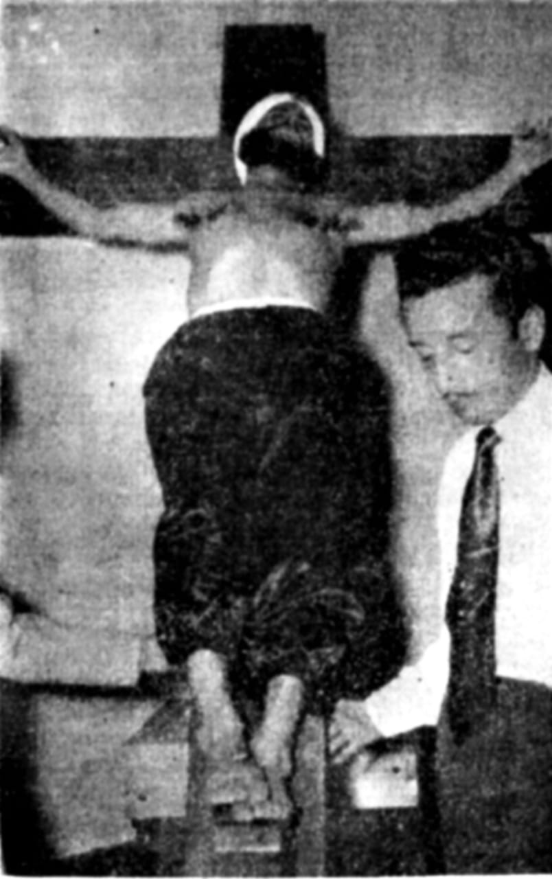 Exactly 70 years ago, in 1955, the annual Abbott’s Get Together was in full force. That night the show boasted Bob Lewis’ comedy magic, the mentalism of Dr. Jaks, the manipulation act of Ruth Ann Magee, and a flashy finale by Percy Abbott that ended with swords through a box. Then, according to Tops magazine, the lights were dimmed and a special feature was introduced. Chami Kkan, a mystic from Venezuela, removed his robe, stepped over to a large timber cross and, as a doctor and nurses supervised, he was nailed to the cross with three long spikes. The procedure took some 20 minutes as the audience exited in horror or waited, slack-jawed, for the finale. A few teenagers giggled. The cross was raised and the crucified man displayed on the stage. The audience was asked to remain silent. They did. The magic conventioneers were understandably confused. It wasn’t a trick. Chami Kkan really did it.