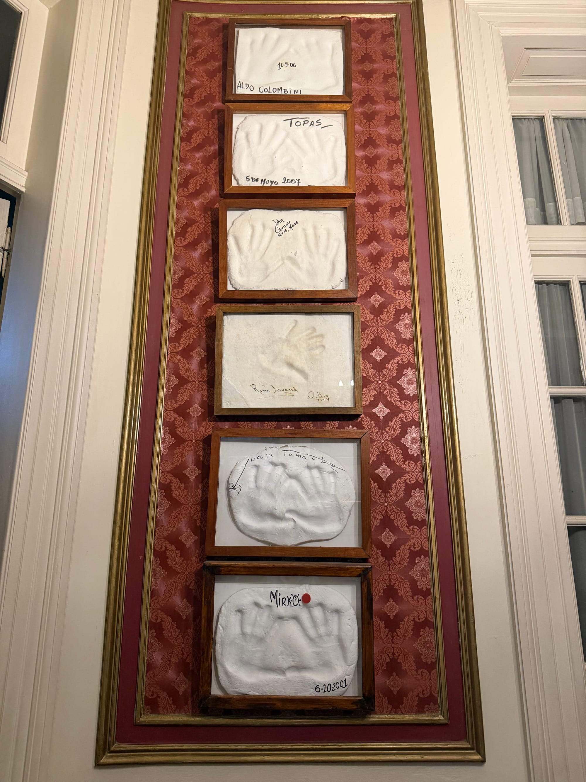 Those hundreds of thousands of people had an immersive experience. “The house is really beautiful,” Marcelo explained, adding that in addition to having posters of magicians on its wallpapered walls, there are also “the hands of the more famous magicians that came here.” Those hands—and there are 40 or 50 pairs of them—aren’t photos, drawings, or anything grislier you might be thinking of; they’re imprints of the performers’ tools of prestidigitation pressed into cement. It’s not unlike what you’d see in Los Angeles outside of the Chinese Theater, except instead of Tom Cruise’s hands, you see Topaz’s, René Lavand’s, Juan Tamariz’s, and John Carney’s.