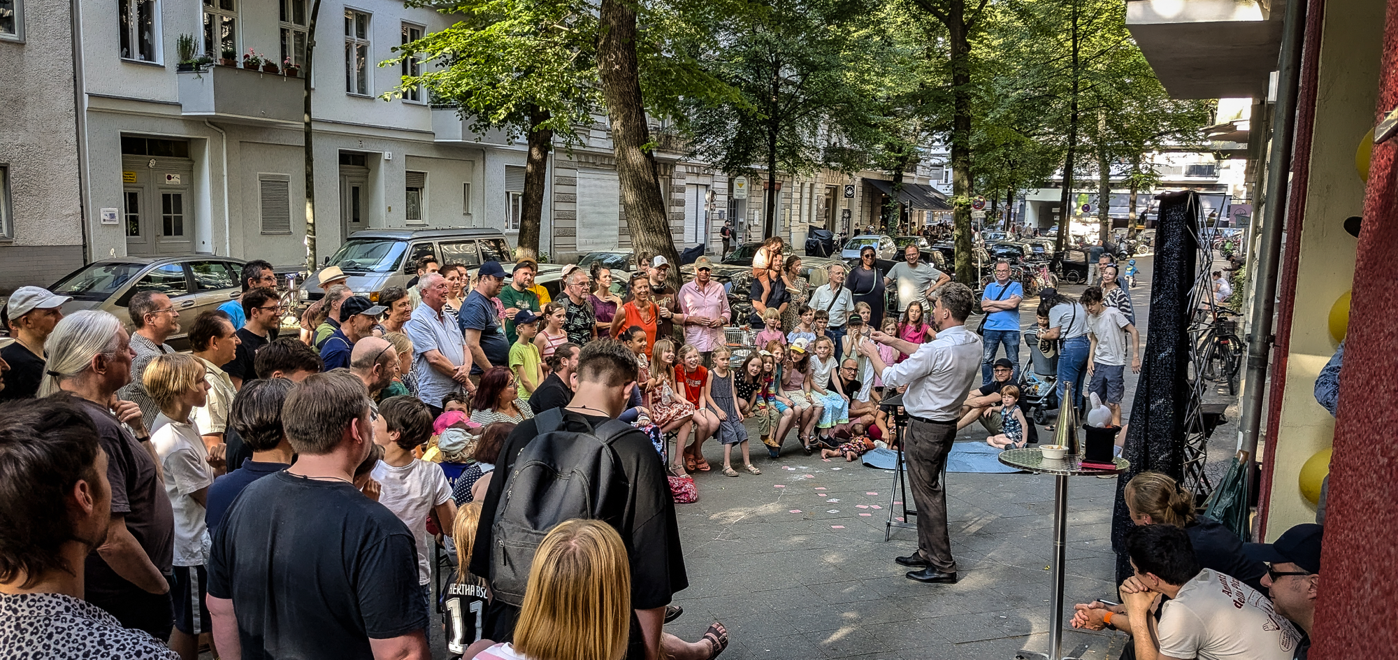 The celebration also included a public street magic show, much to the delight of the children who stopped to watch, and an evening show featuring the lecturers as well as guest performers Martin Erman, Zauberer Mike (Magician Mike), Emil Kowalewsky, Clemens Ilgner, Jan Gerken, Fabio, and Siegfried from the TikTok duo Siegfried & Joy.