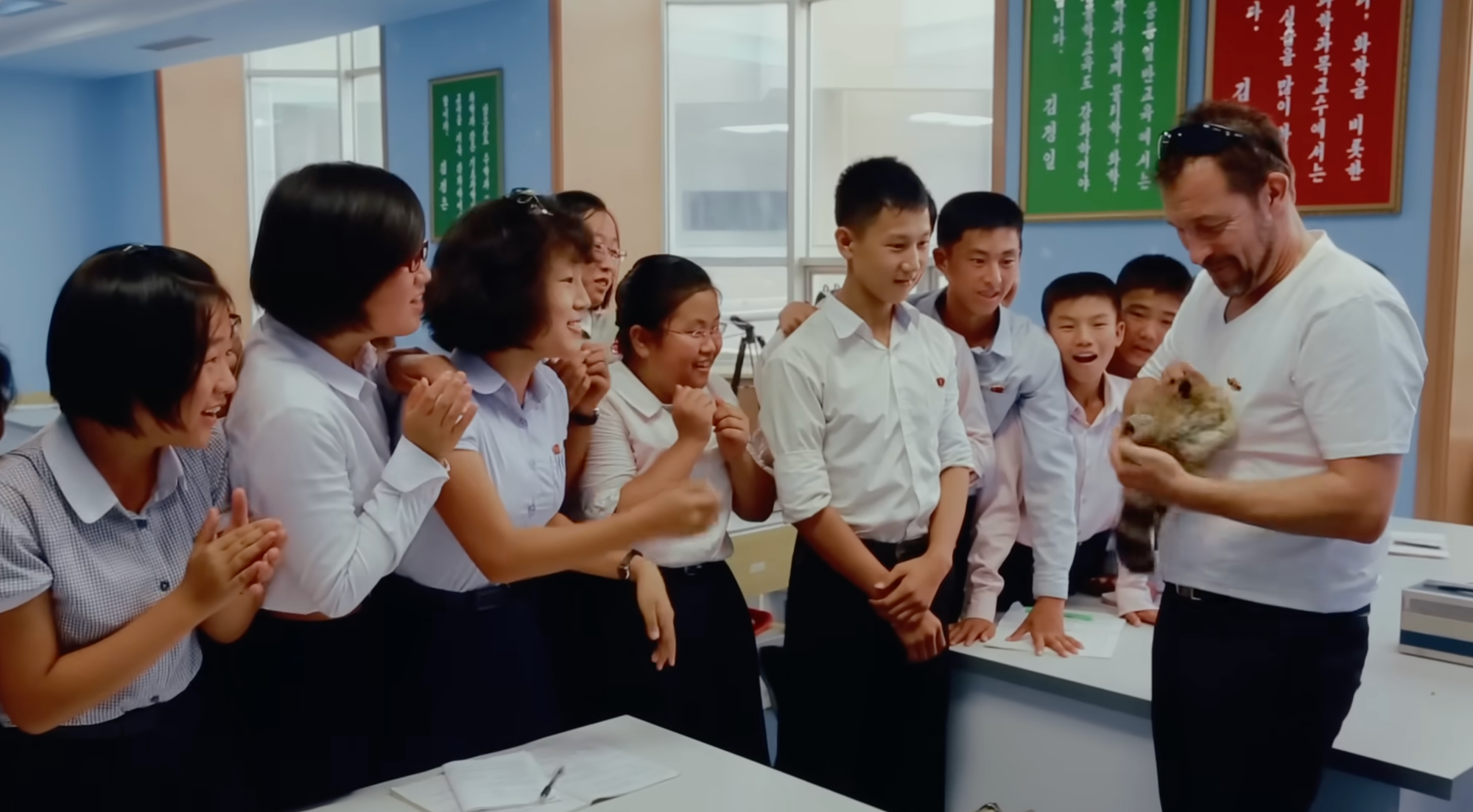 Even with these restrictions, however, the government allowed him to film his time in the country, where he primarily performed for schoolchildren (Jesper’s request to perform for the dictator Kim Jong Un was rejected). In a YouTube video that first went up in December 2024, you can see Jesper’s impact on several groups of children, who are initially wary of him before he wins them over with magic. The video also shows him entertaining a tight-laced guard, who bursts out laughing after several clown noses miraculously appear in her hands.
