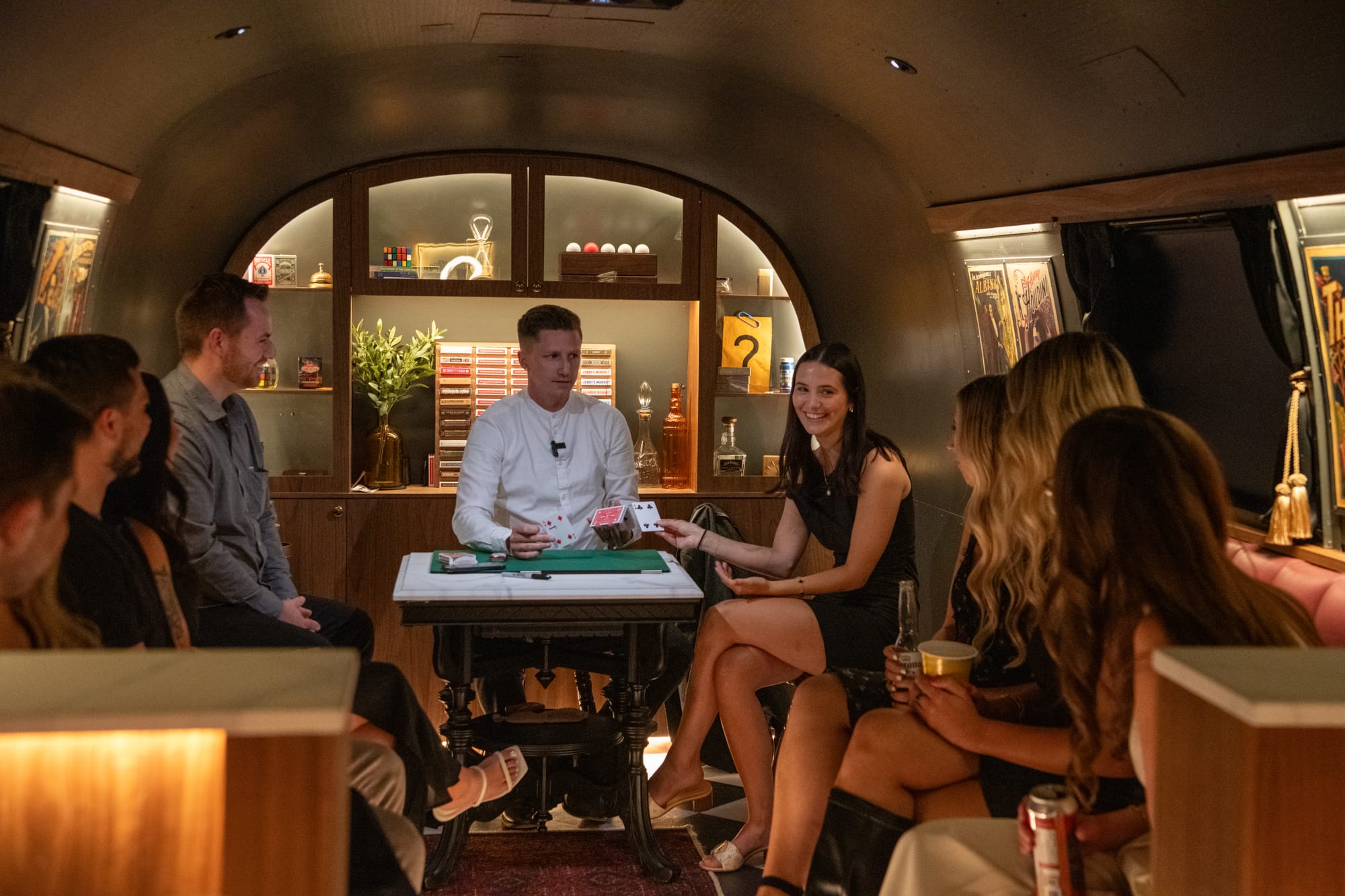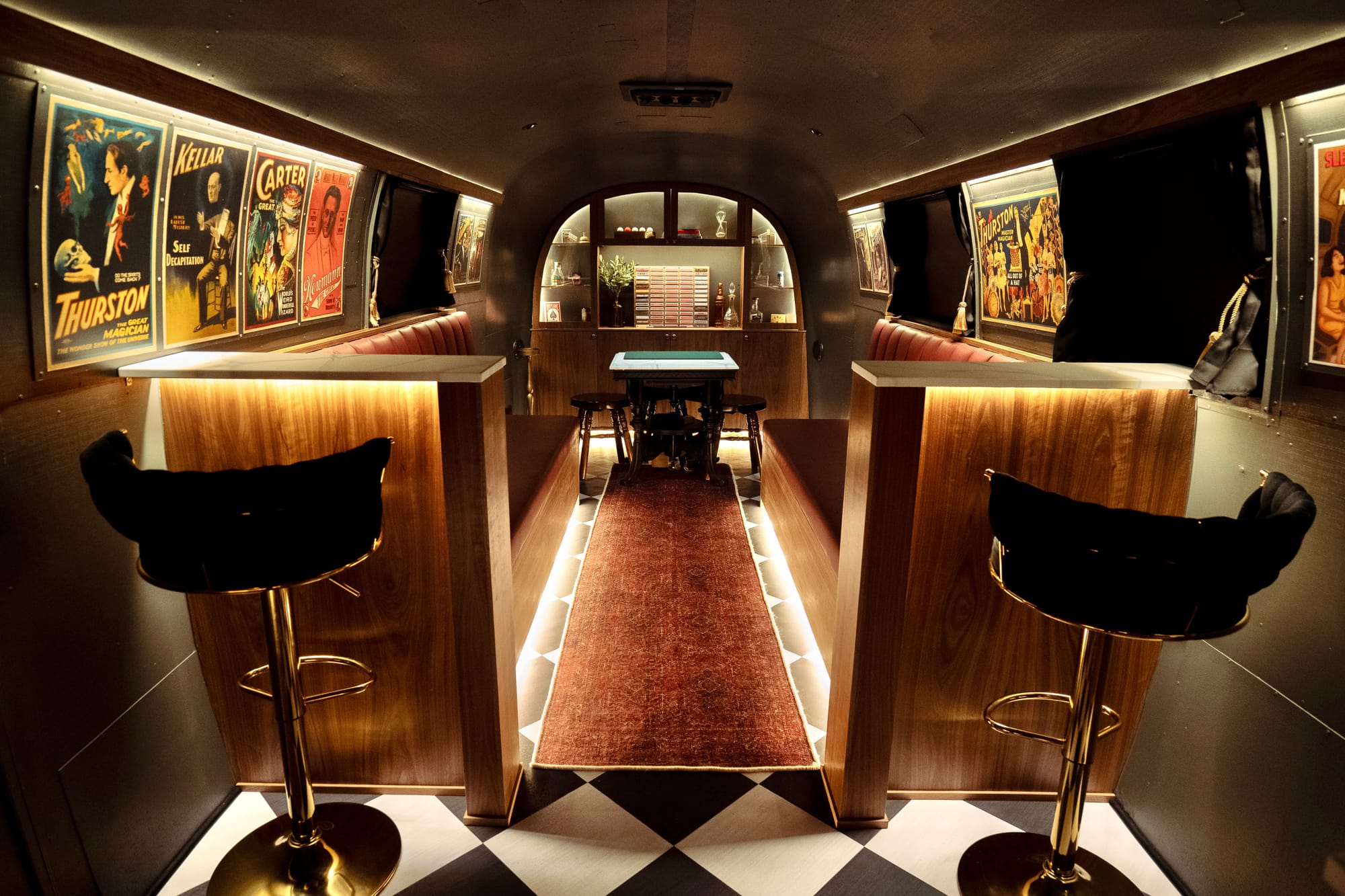 The idea to refurbish the Airstream came from his wife, Julia. The couple had been renovating Airstreams into tiny mobile homes as a business, and after a trip to Nashville in 2023, decided to take a hand at converting one into a magic lounge.