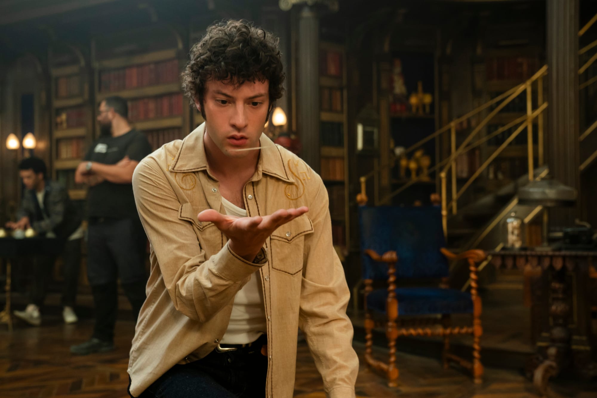 During quieter story moments, he and Jared coached Justice Smith on one of their proudest on-set accomplishments: a simple thumb-tip silk vanish, a sleight so small it could almost disappear within the movements that surround it.