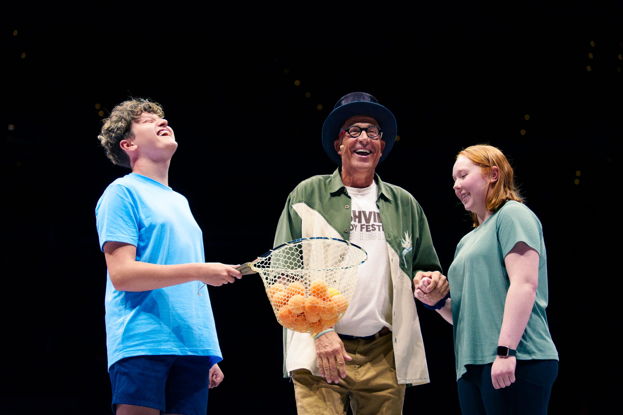 When he first joined Nate in theaters, Stephen initially felt he should have bigger props. “In the beginning, out of guilt, I felt I had to change the material to play bigger. But then I realized that with the cameras, we can focus in.” So Stephen decided to perform the tricks he had been doing for his whole life, including his hilarious Straitjacket Escape, Sponge Balls in a net, and the Gumball Machine, which he has closed all his shows with for the past 20 years.