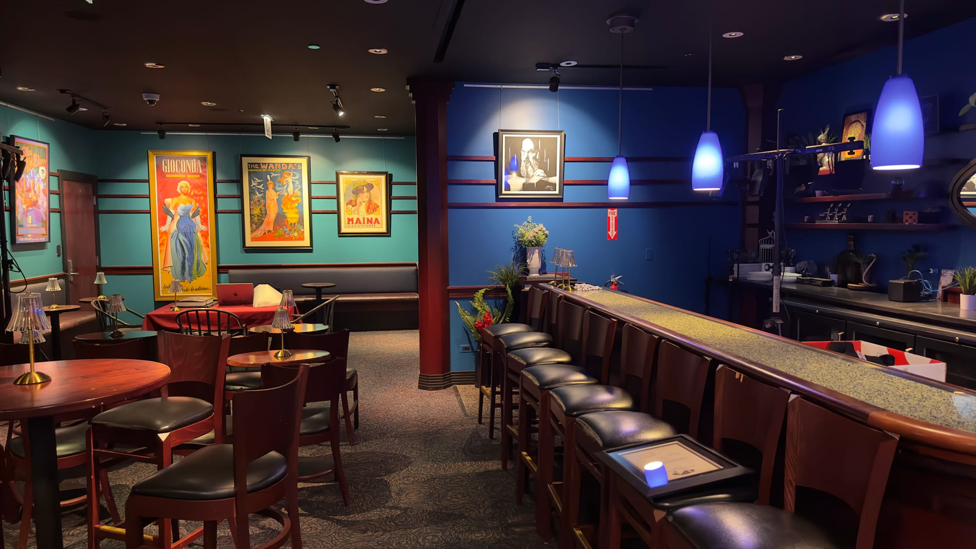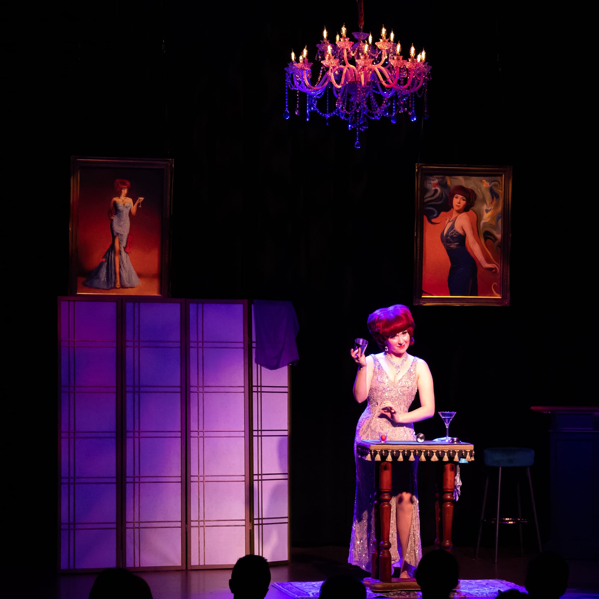 The Rhapsody is a large space. There’s the 200-seat theater, a smaller 30-seat space dubbed the Eugene Burger Close-Up Gallery, a restaurant area, and starting this fall, a séance room. There are also three bars. Guests entering The Rhapsody usually enter through the restaurant, which houses one of those bars. Drinks are ordered there, at the bar by the theater entrance, or at the cabaret-style seats via QR code (along with food) if patrons want to head to the theater, which is decorated in an art deco style, immediately. Both the food and drinks are themed to whoever is performing, giving the performers an added perk of coming up with cocktails and mocktails they think would go well with their act. After the theatrical show, some performers continue to entertain in the close-up space as an add-on to their theater performance.