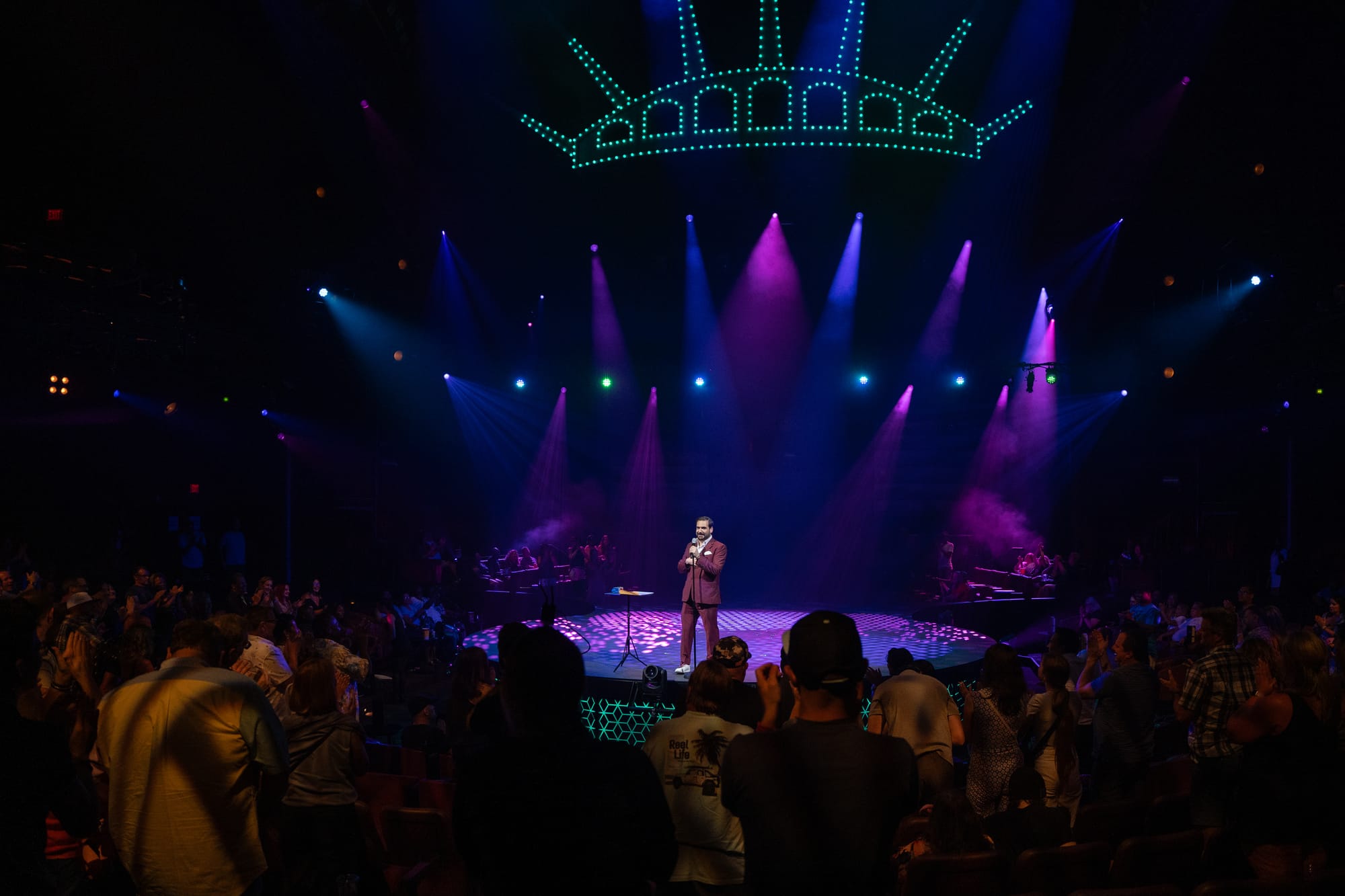 “We’ve been able to do these awesome virtual sets,” Greenbaum told THE EYE. “It’s all projected on this giant screen, so it’s actually pretty easy to travel with.” The technology is so impressive that Greenbaum joked audiences sometimes react more to set changes than his act.