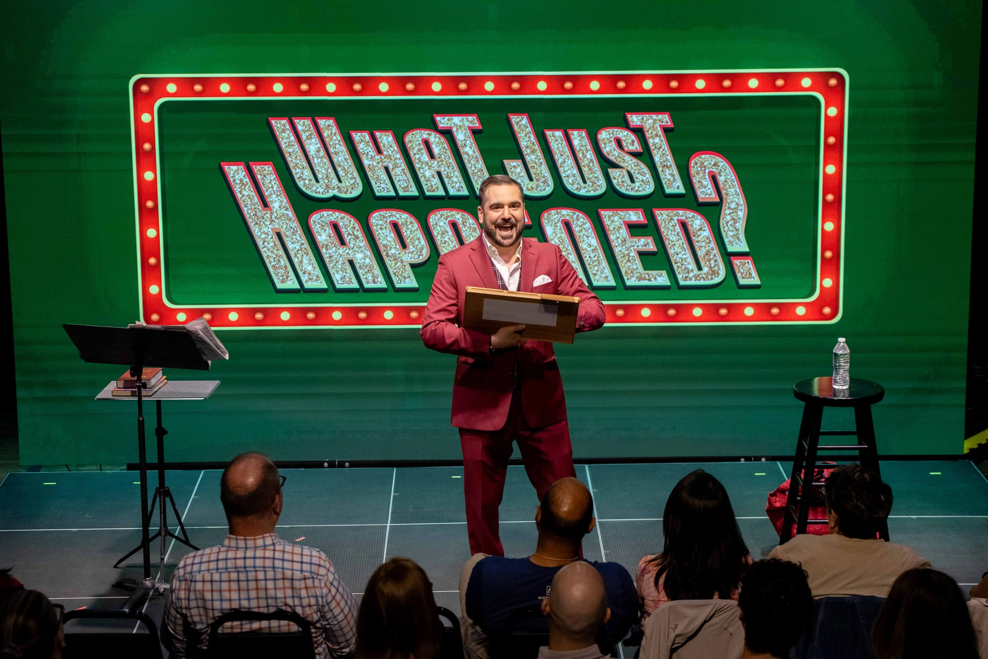 Harrison Greenbaum's What Just Happened? ended its off-Broadway run at Aslyum NYC this April. That doesn’t mean, however, that the show is over. Greenbaum will be taking What Just Happened? on tour across the country, bringing his off-Broadway performance to places in Pennsylvania and elsewhere. And thanks to the setup for the 90-minute show, its look and feel will travel well.